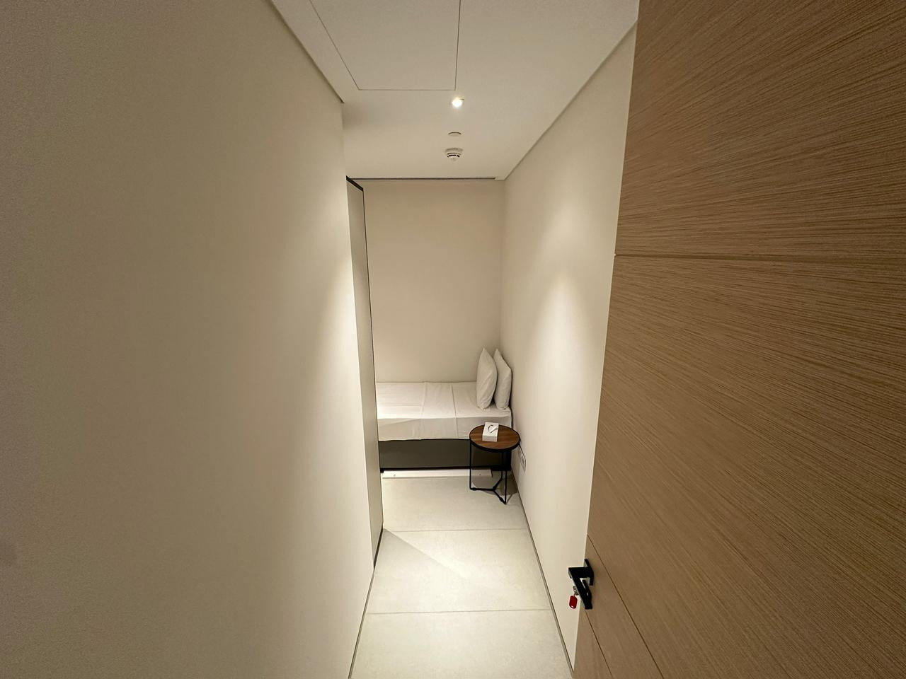 This room is cozy, featuring a single bed and a stylish lamp that adds a touch of class. You've got a double dresser with drawers to stash your stuff. No need to fret about the bathroom; it's just down the hallway.