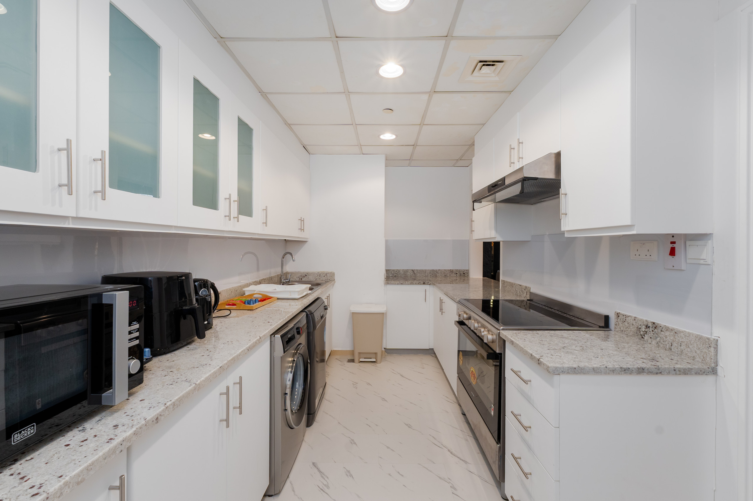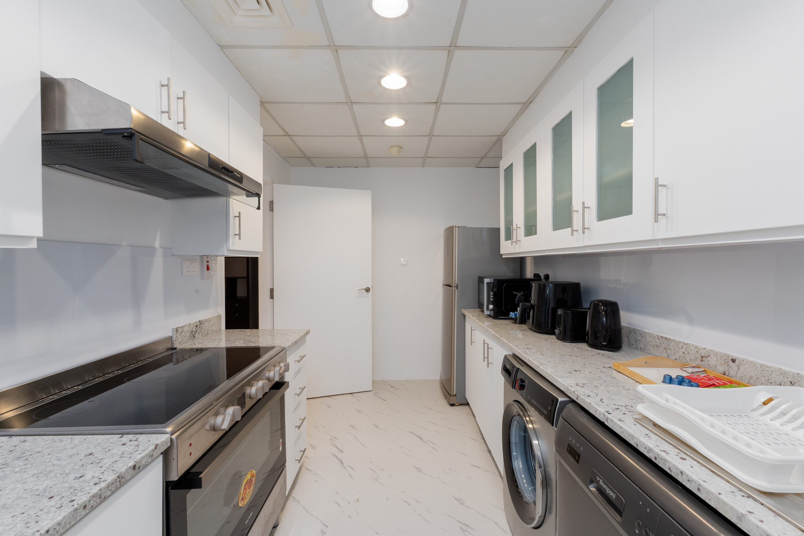 I know, the neighborhood is tempting, but heading back to a stylish living room is like hitting the reset button for your energy. Lounge on the comfy gray couch, binge your favorite series on TV, or dominate on the PS5—it’s your call. Need a breather? The balcony is perfect for a quick escape with some outdoor vibes. Cooking up something? The fully-equipped kitchen is ready for action. Don’t stress about cleanup; the dishwasher’s got your back, and yes, there’s a washer for your laundry too. Oh, and the high-speed WiFi? Always ready to keep you connected.