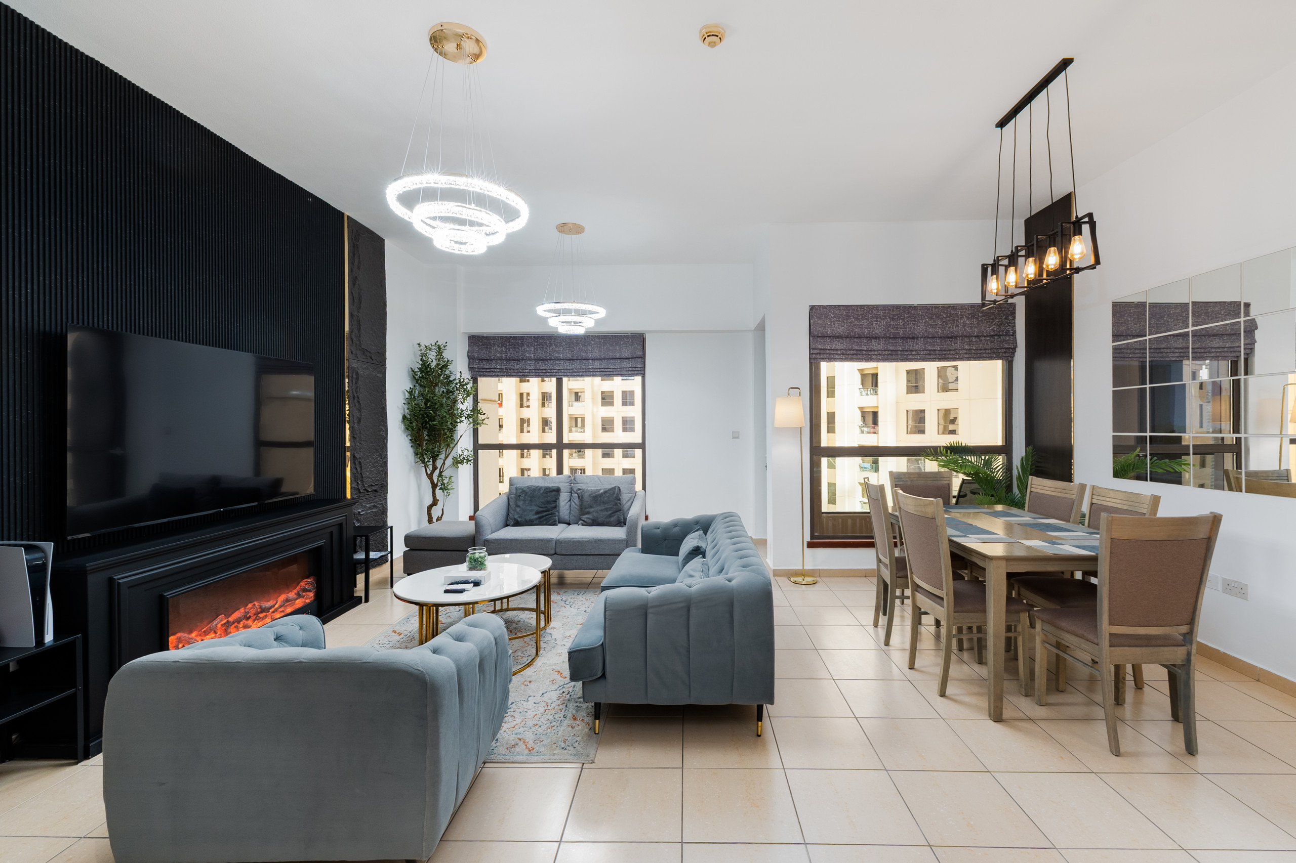 This isn’t your average apartment—it’s a total find! We’re talking about a PS5, an electric fireplace, and a prime location. Walk to The Beach, Ain Dubai, Palm Jumeirah, Marina Walk, and even discover some street art nearby. JBR is the foodie’s paradise with endless cafes, restaurants, and hangout spots. You also get free access to the pool and gym. The apartment itself? Decked out with modern furniture, top-tier appliances, a super comfy bedroom, and a balcony to call your own.