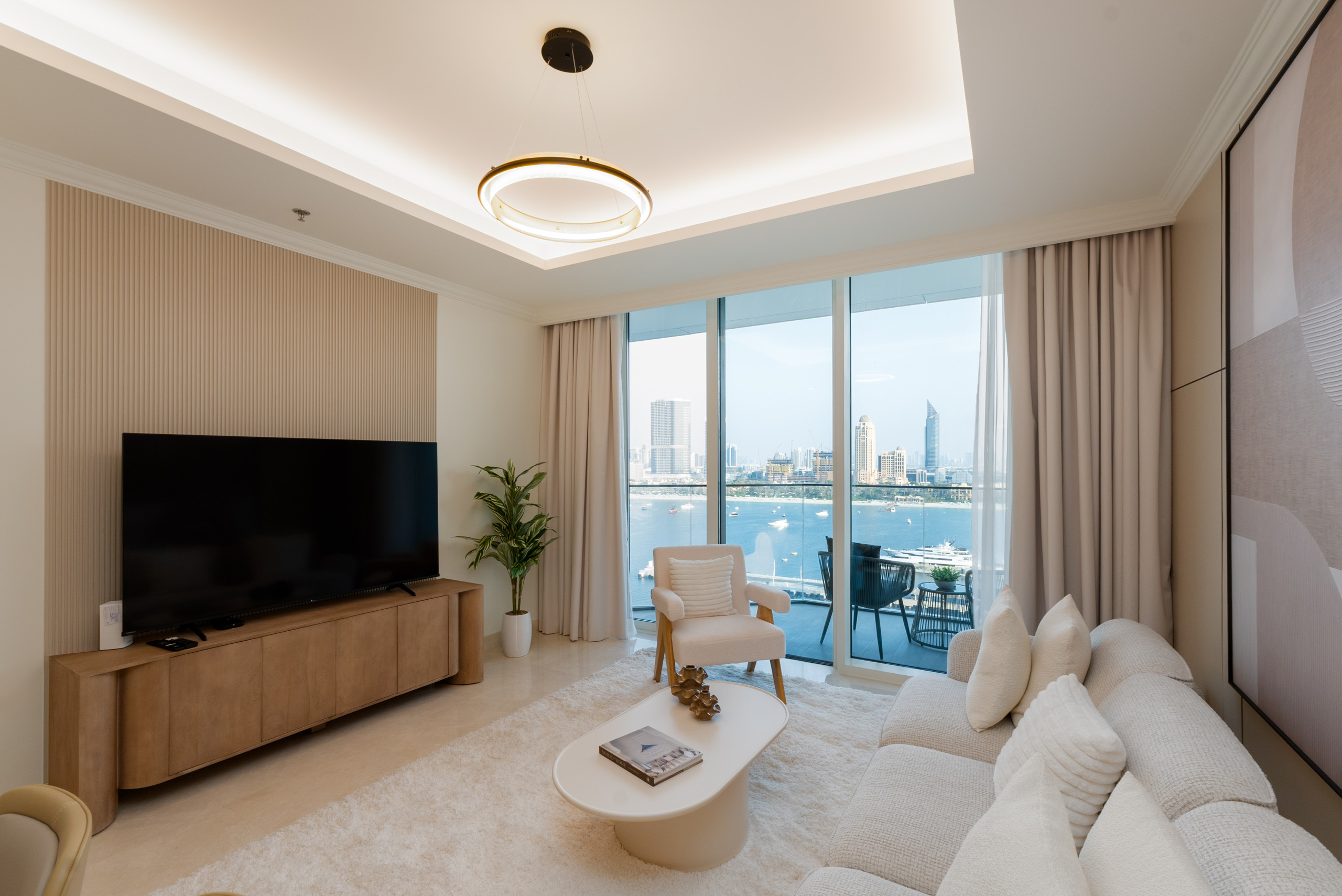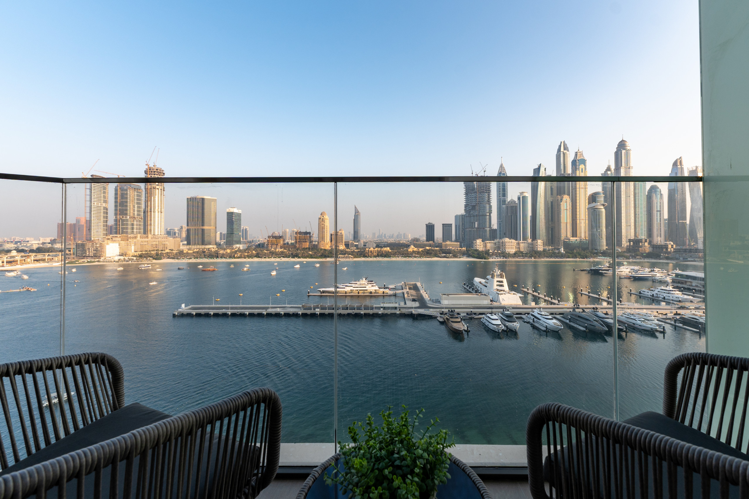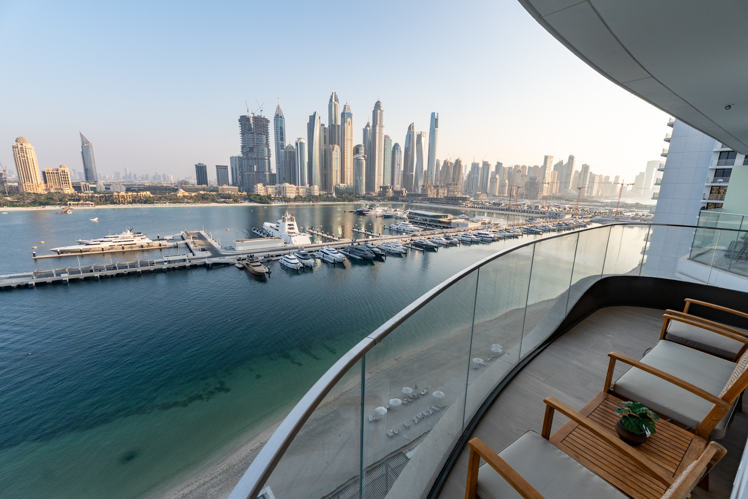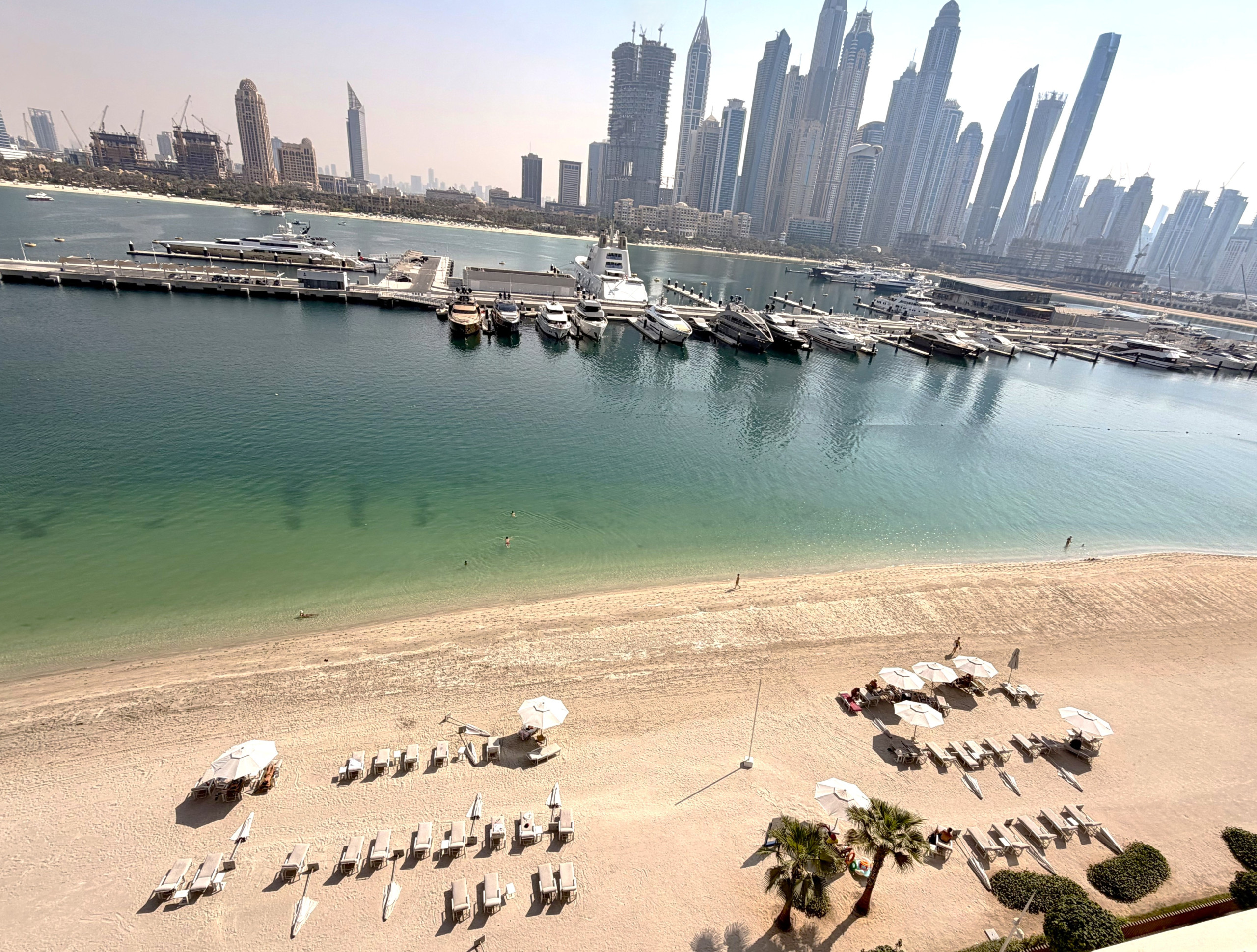 Prepare to be captivated by breathtaking panoramic views — whether you gaze out over the sparkling sea, the inviting pool, or the iconic Dubai skyline. This exquisite two-bedroom apartment is your private sanctuary. Start your mornings in serenity with a coffee on your private balcony, followed by exclusive access to the private beach. When you're ready to explore, the vibrant heart of Palm Jumeirah, JBR, and Dubai Marina are minutes away, putting world-class experiences at your fingertips.