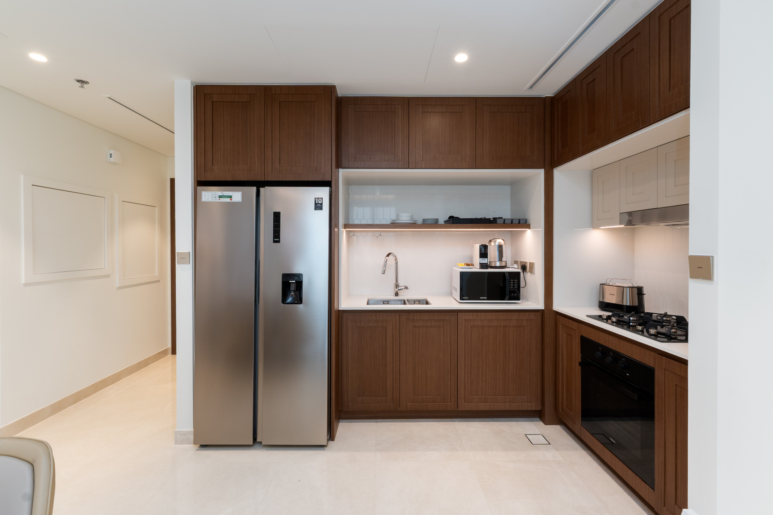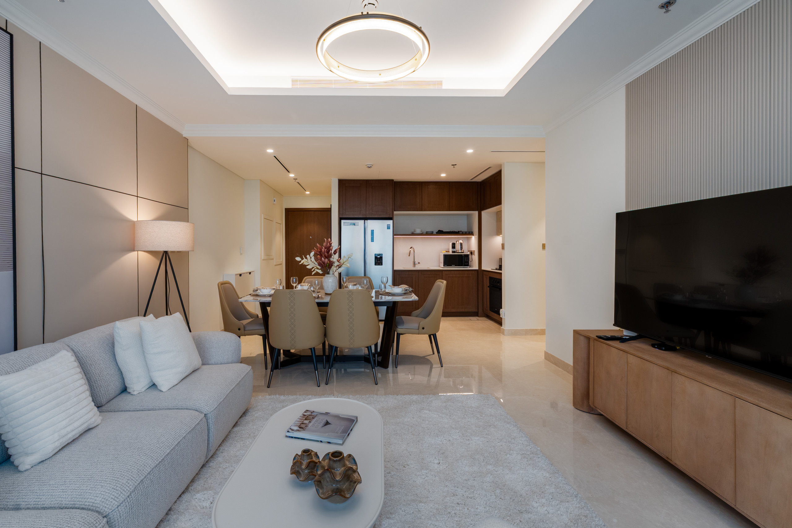 This place gives you the full package—access to the whole apartment with a balcony that overlooks everything, a spacious living area, a kitchen and dining area perfect for meals together, 2 comfy bedrooms, and 2 bathrooms. And it’s not just about the apartment! The building amenities are yours to enjoy too. Spend some time unwinding by the private beach, take a dip in the pool, or break a sweat at the gym. For the little ones, there's a kids’ area to keep them entertained, plus a family BBQ spot to fire up some fun on weekends.