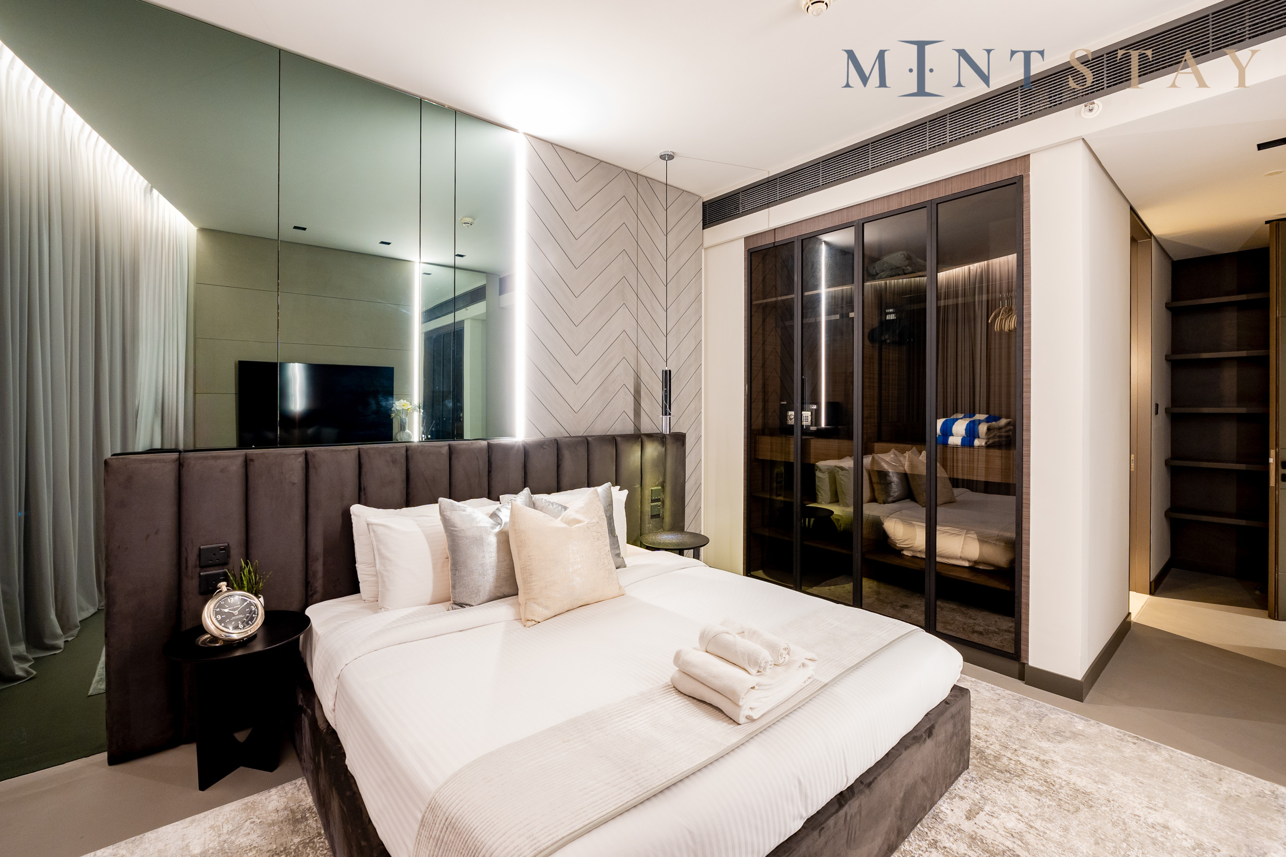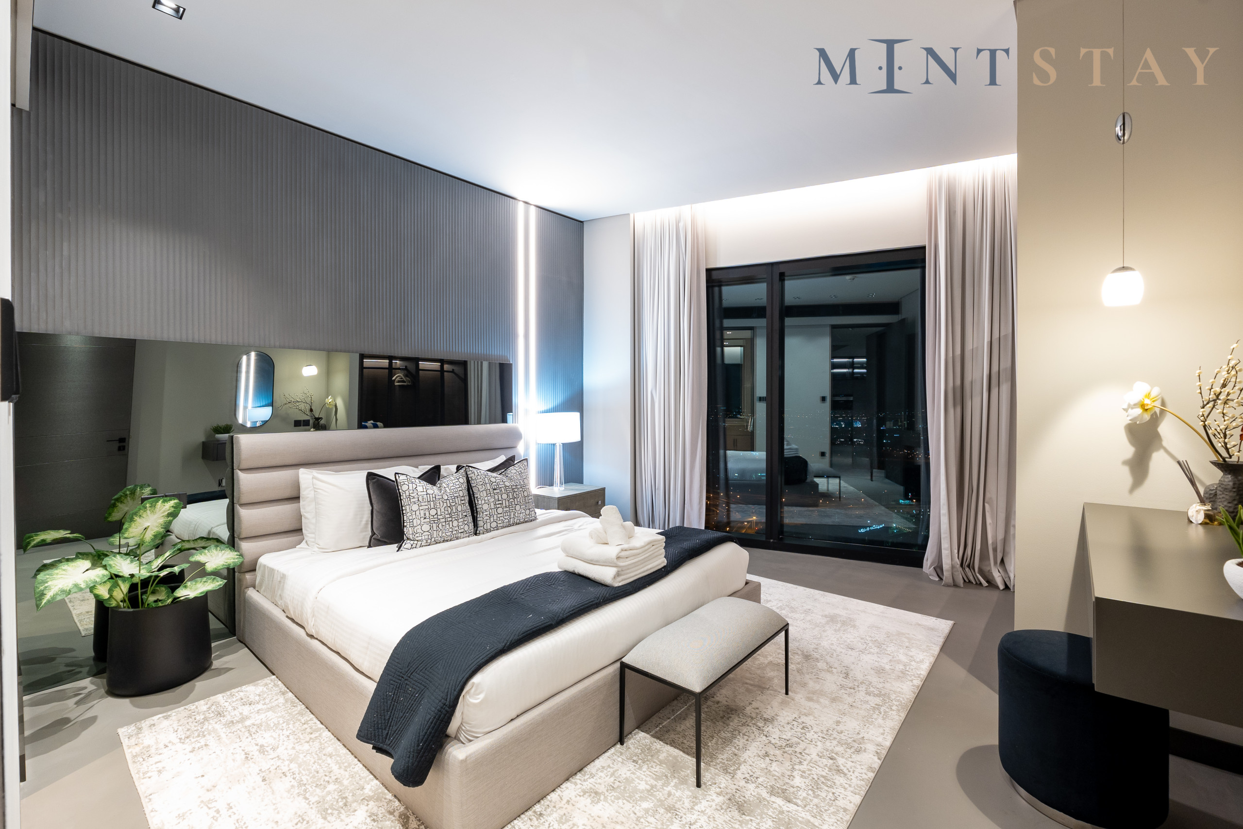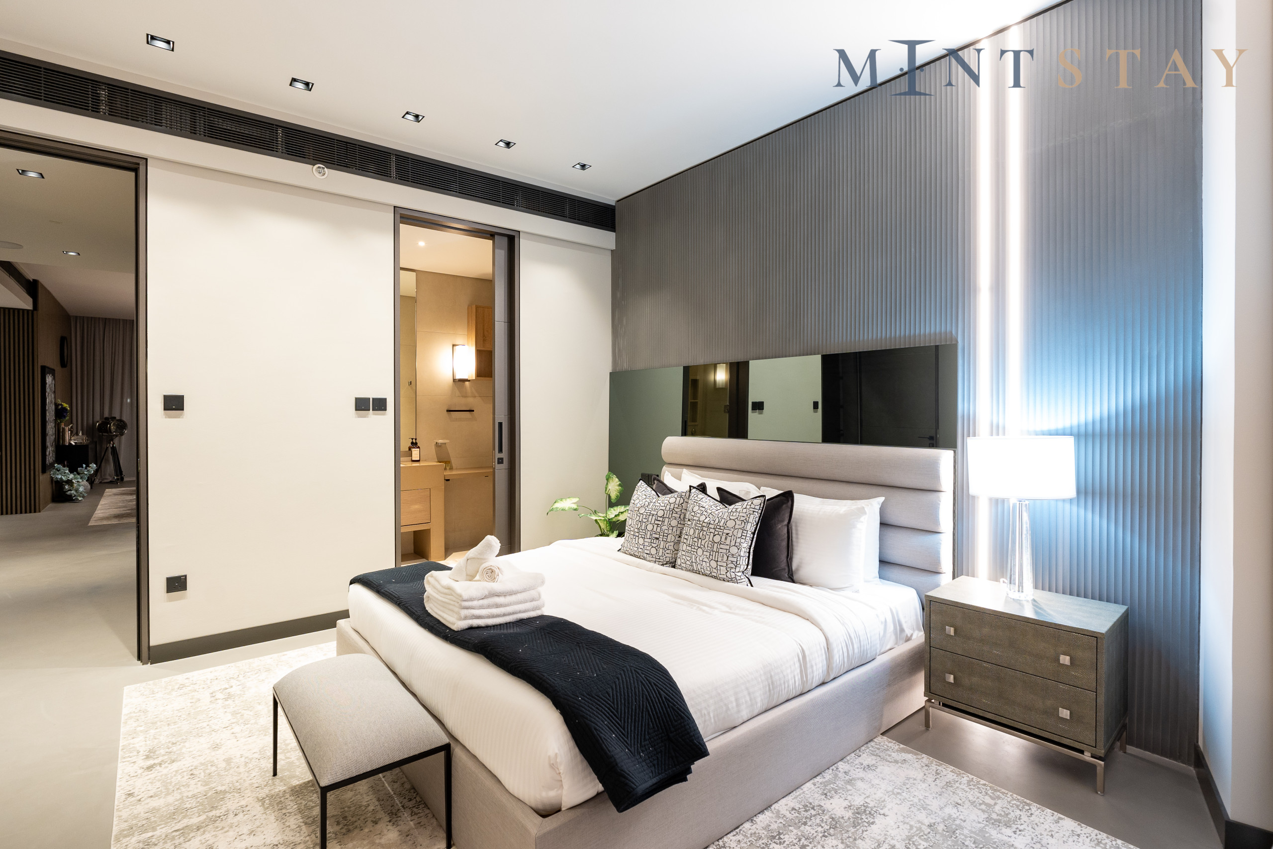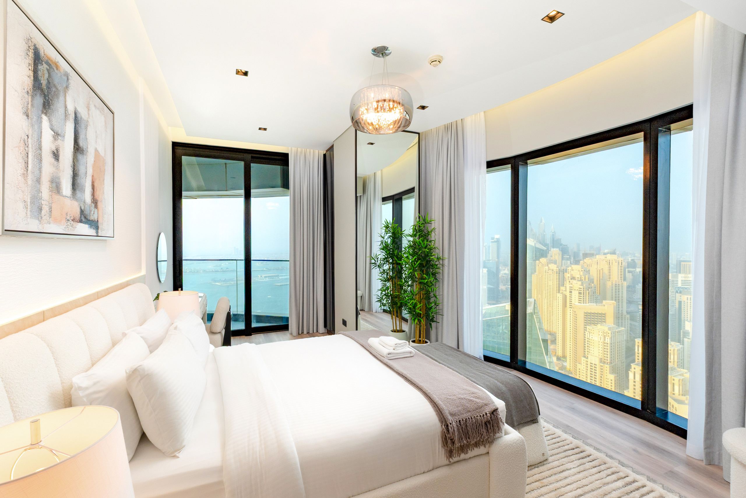 Four luxurious bedrooms, a wine cellar, a firelit centerpiece, and beach and city views – all in a monochromatic setting with high-end and functional furnishings. Trust me, this apartment stands out – its neighborhood is also one of Dubai's top destinations, so expect easy access to many trending spots like The Walk at JBR and Ain Dubai at Bluewaters Island. Plus, there's a plethora of cafes and restaurants nearby, not to mention a private beach, pool, and gym.