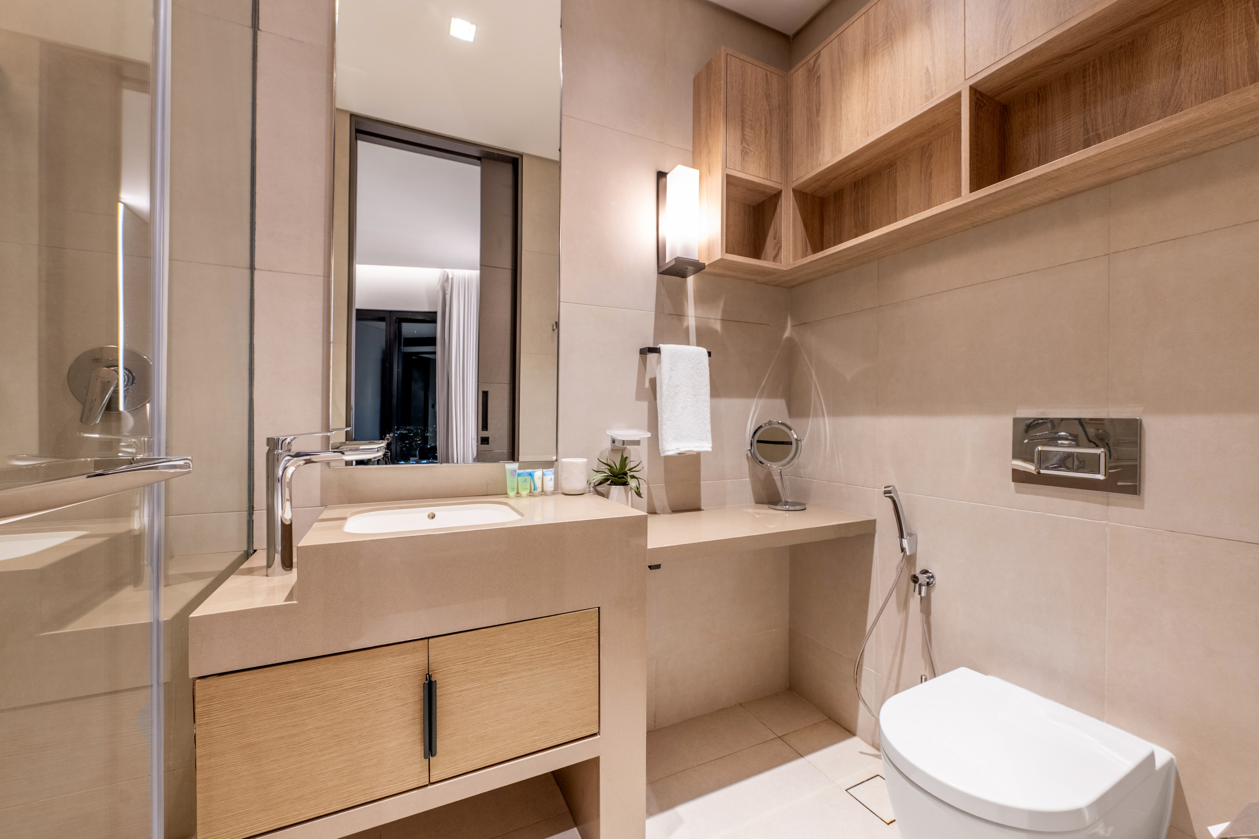 The second, third, and fourth bedrooms offer the same luxury as the master bedroom. All come with king-size beds and premium linens, plus a view of the Burj Khalifa, so everyone gets a special treatment. Each room includes a spacious wardrobe to keep belongings secure. The second and third bedrooms share a common bathroom in the hallway, while the fourth bedroom has an en suite bathroom with a shower. And yes, there’s a maid’s room with an en suite bathroom for your helper.