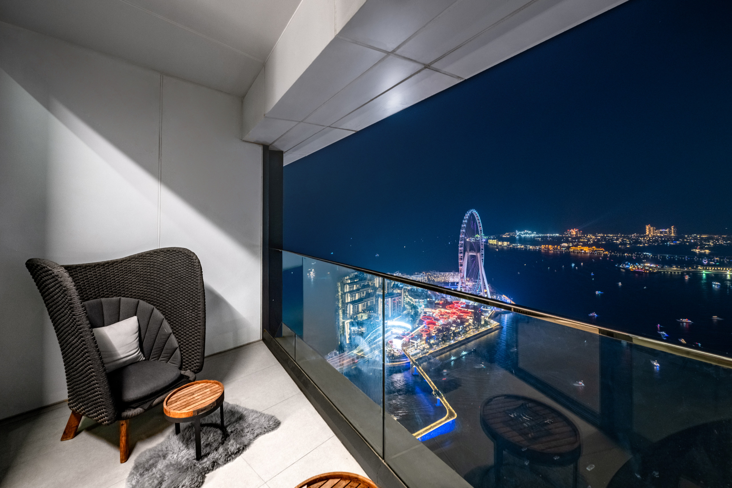 Feel like a VIP while sipping your mocktail at night with a full view of the Burj Al Arab from your private balcony. Need more luxury? Head over to your private rooftop and take in the stunning city view. If you prefer a quieter, more private atmosphere, why not relax on the curved sofa and catch up on your favorite TV series? And if takeout loses its appeal, head to the fully equipped kitchen stocked with all the essentials: stove, oven, microwave – you name it. After indulging at the modern dining table, simply load everything into the dishwasher. Plus, there's a washing machine for your laundry needs and high-speed Wi-Fi to stay connected with your friends.