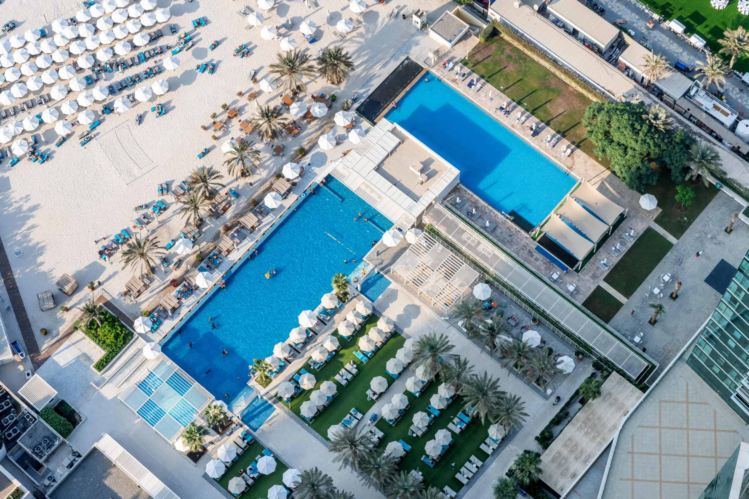 Exploring Dubai is thrilling, but it's even better knowing this bedroom awaits you! Relax on a king-size bed with the softest sheets and pillows, while enjoying a view of the Burj Al Arab and direct balcony access. The pool might be tempting, but the en suite bathroom is a real treat with its bathtub and glass shower enclosure. There's also a spacious wardrobe – perfect for keeping your vacation style on point.