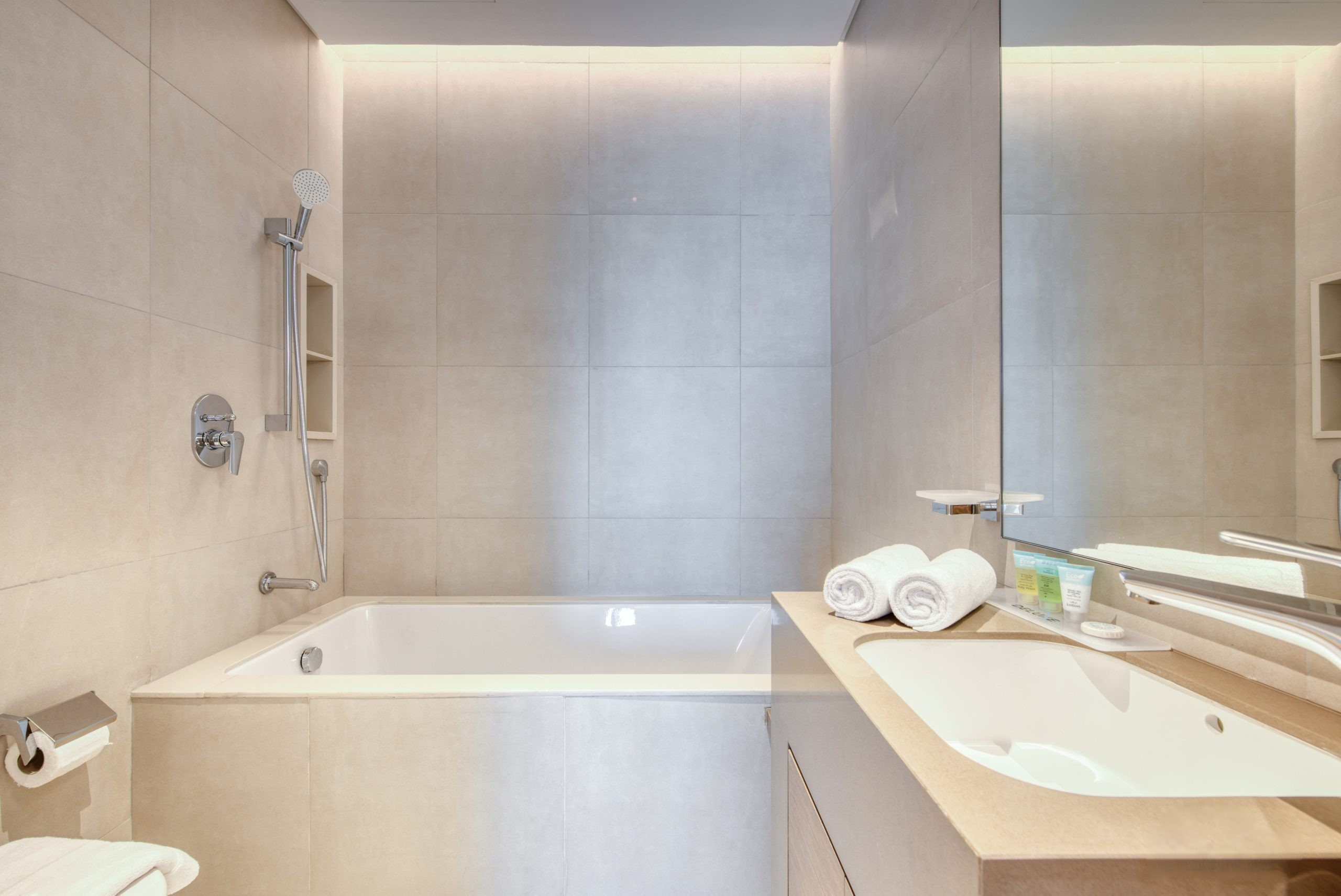 And for that extra touch of indulgence after your Dubai adventures, the bathroom awaits just outside the bedroom with a convenient shower.