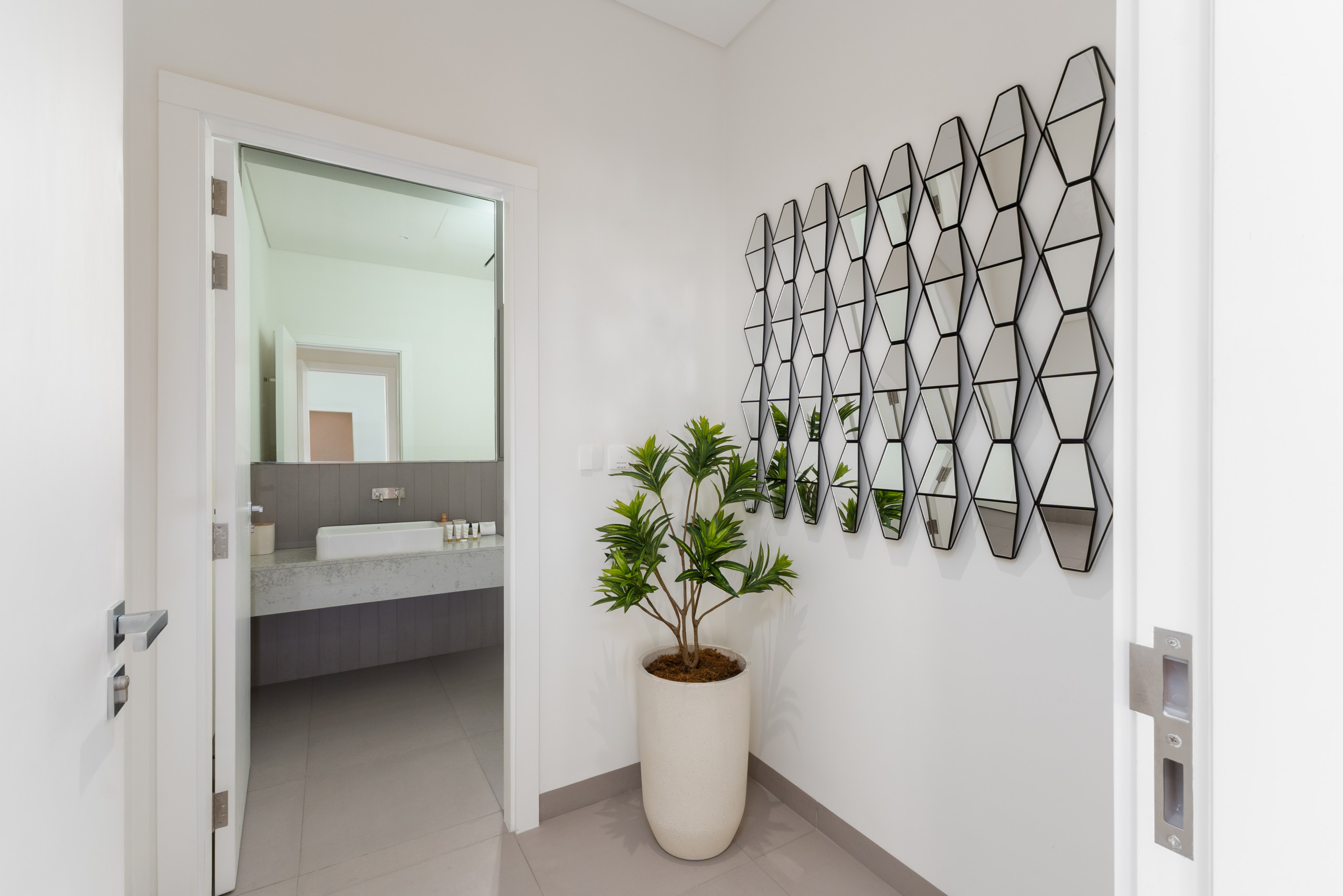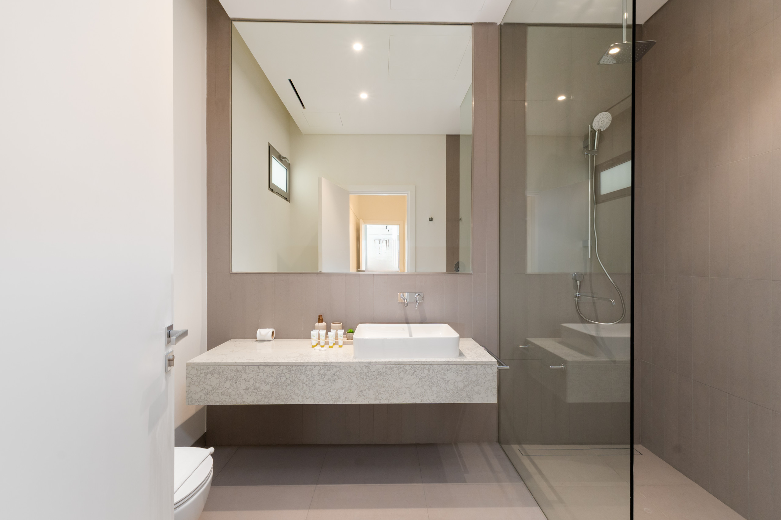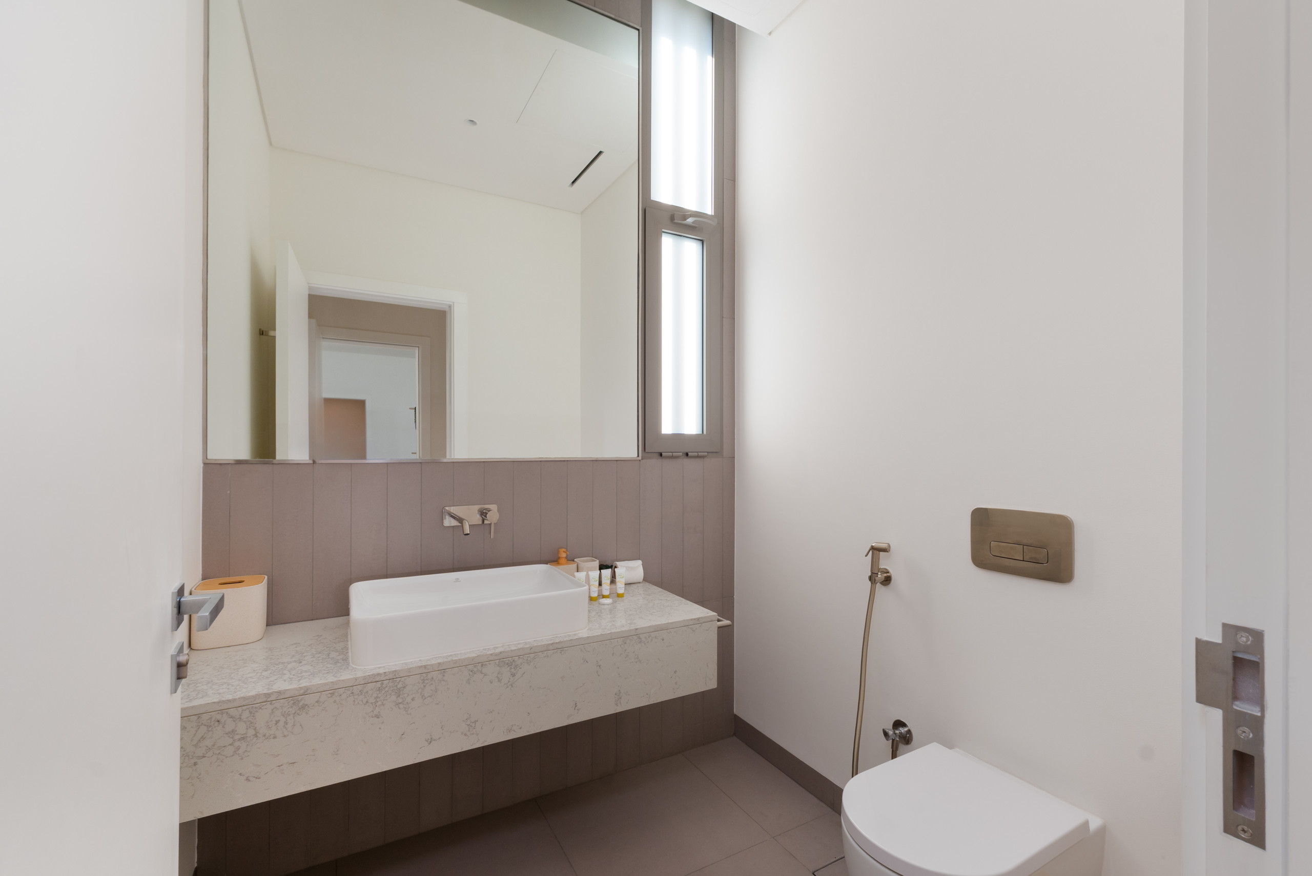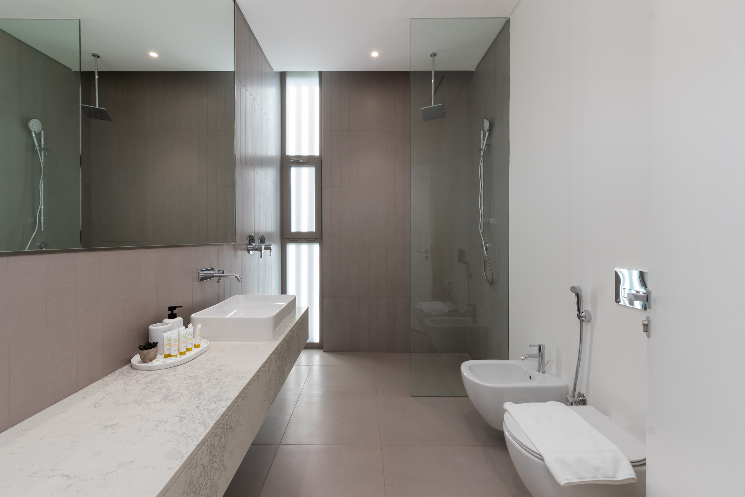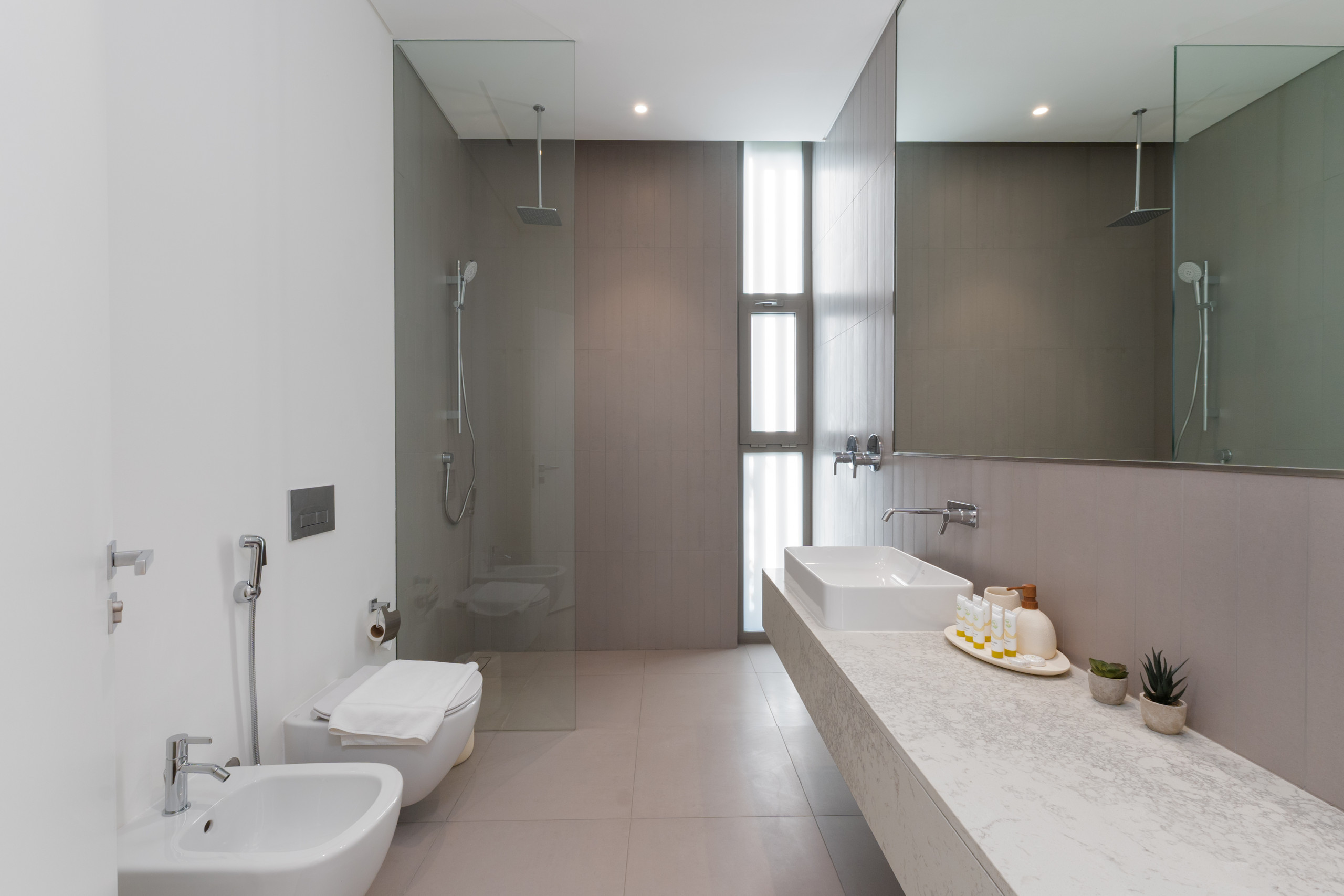 The second and third bedrooms are furnished with comfortable king-size beds, while the fourth bedrooms offer flexibility with two cozy single beds. All bedrooms feature generous floor-to-ceiling sliding doors, bedside tables, roomy wardrobes, and private ensuite bathrooms with refreshing showers, ensuring every guest has a serene and convenient space.