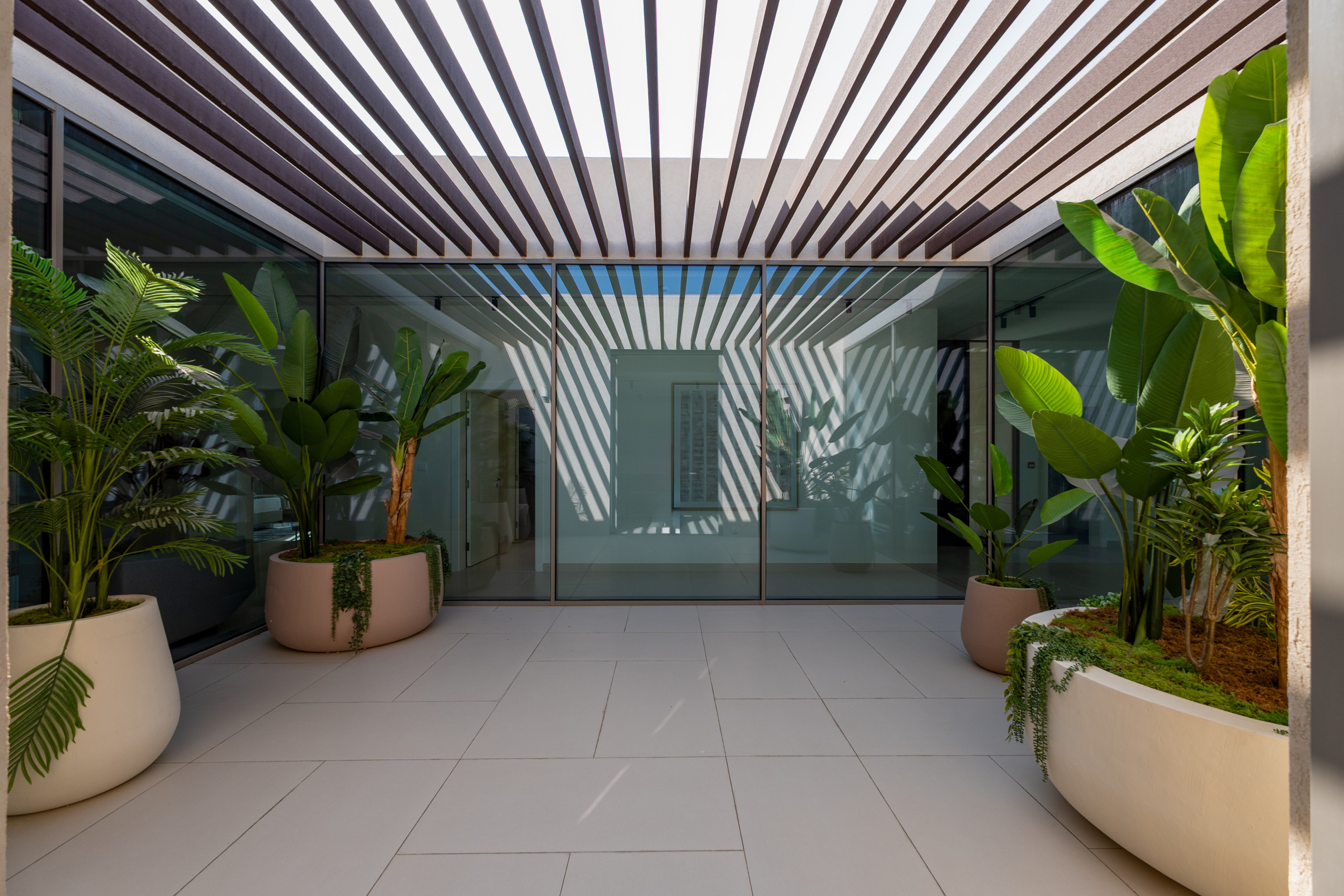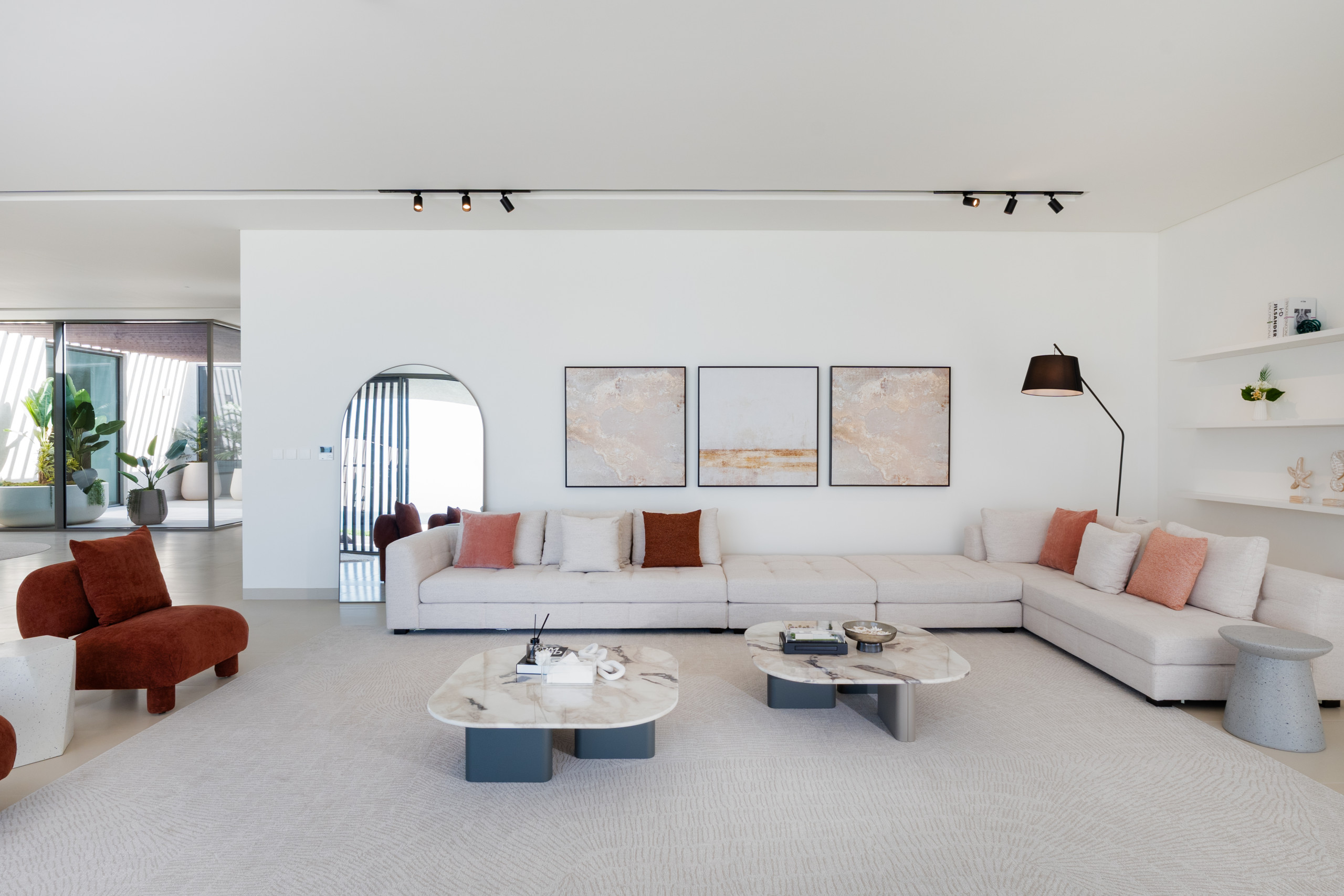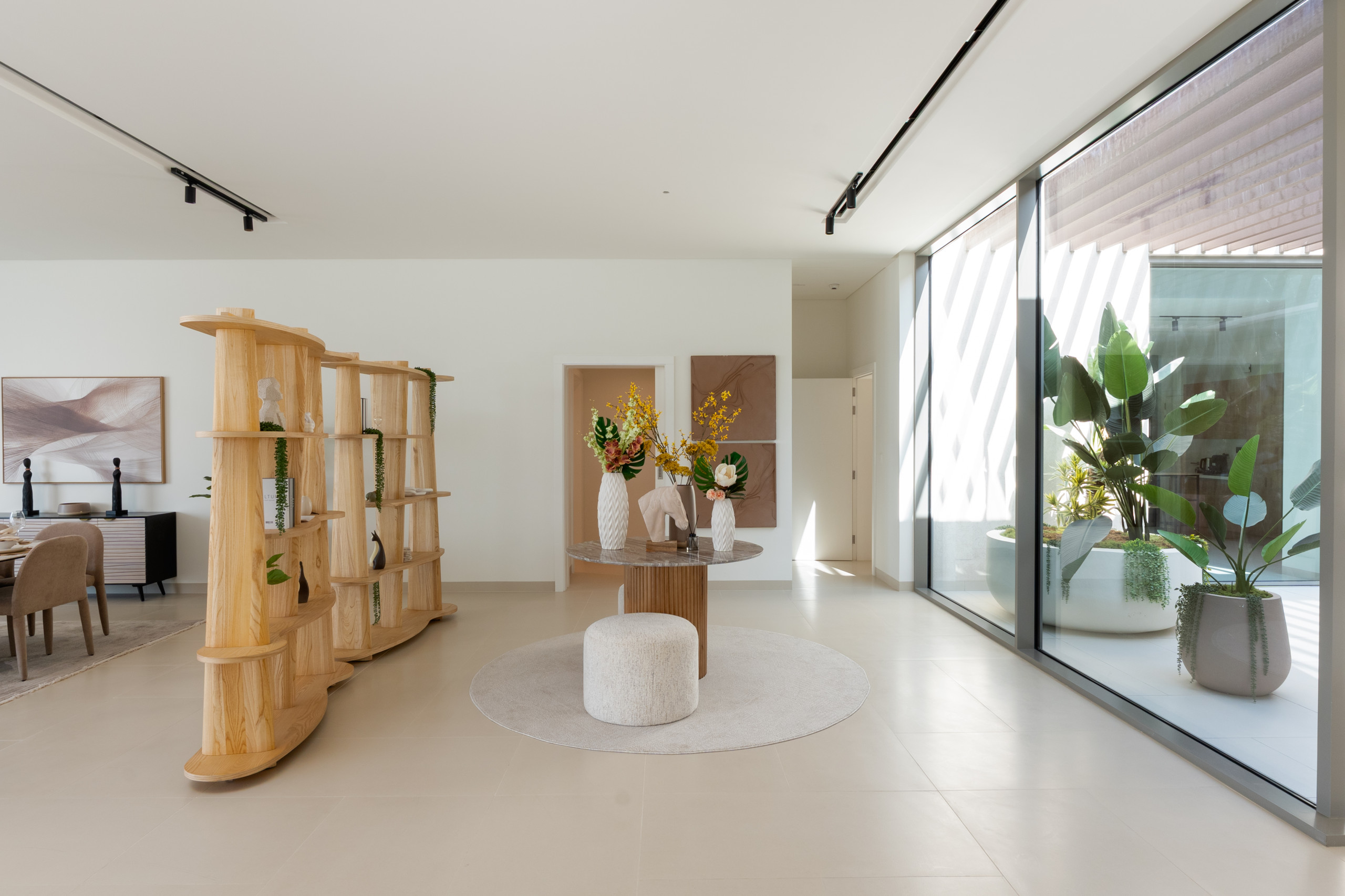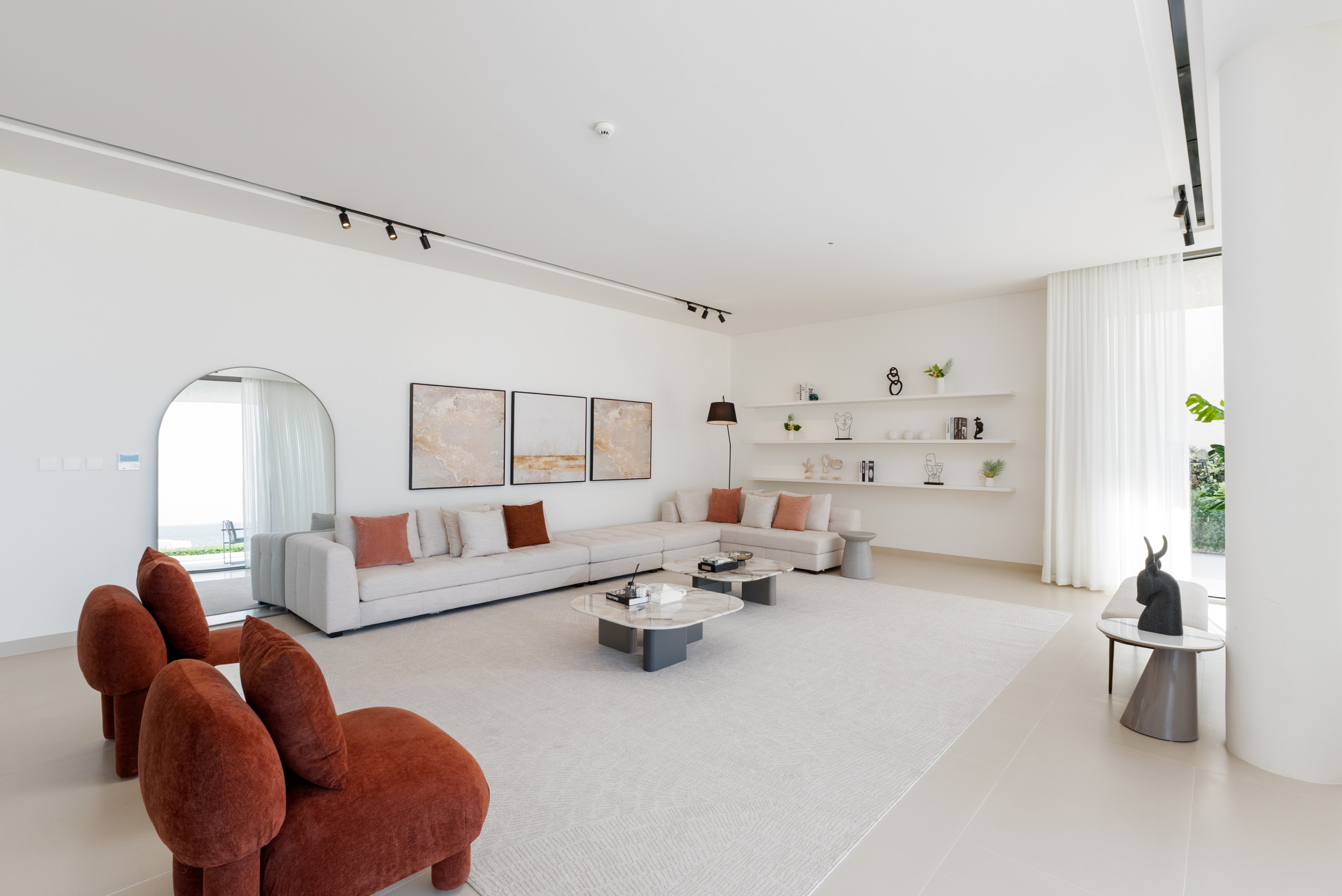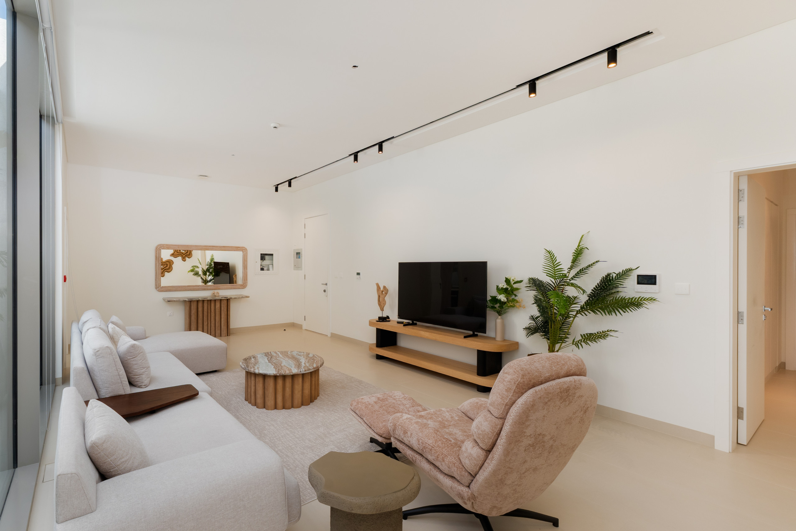 Indulge in an exclusive lifestyle the moment you enter this villa’s vast, light-drenched living space, where stunning sea views and floor-to-ceiling glass lead seamlessly onto the private terrace and pool area. Designed for both grand entertaining and everyday relaxation, the home features a dedicated ten-seat dining area separate from the kitchen, while the sleek chef’s kitchen, anchored by a modern bar, opens directly onto a unique, glass-enclosed indoor garden that serves as a calming architectural centerpiece. A cozy second lounge offers the perfect setting for movie nights on the expansive 55” TV, and for ultimate convenience, the villa is fully equipped with essential appliances including a washing machine, along with high-speed Wi-Fi throughout the entire expansive home.