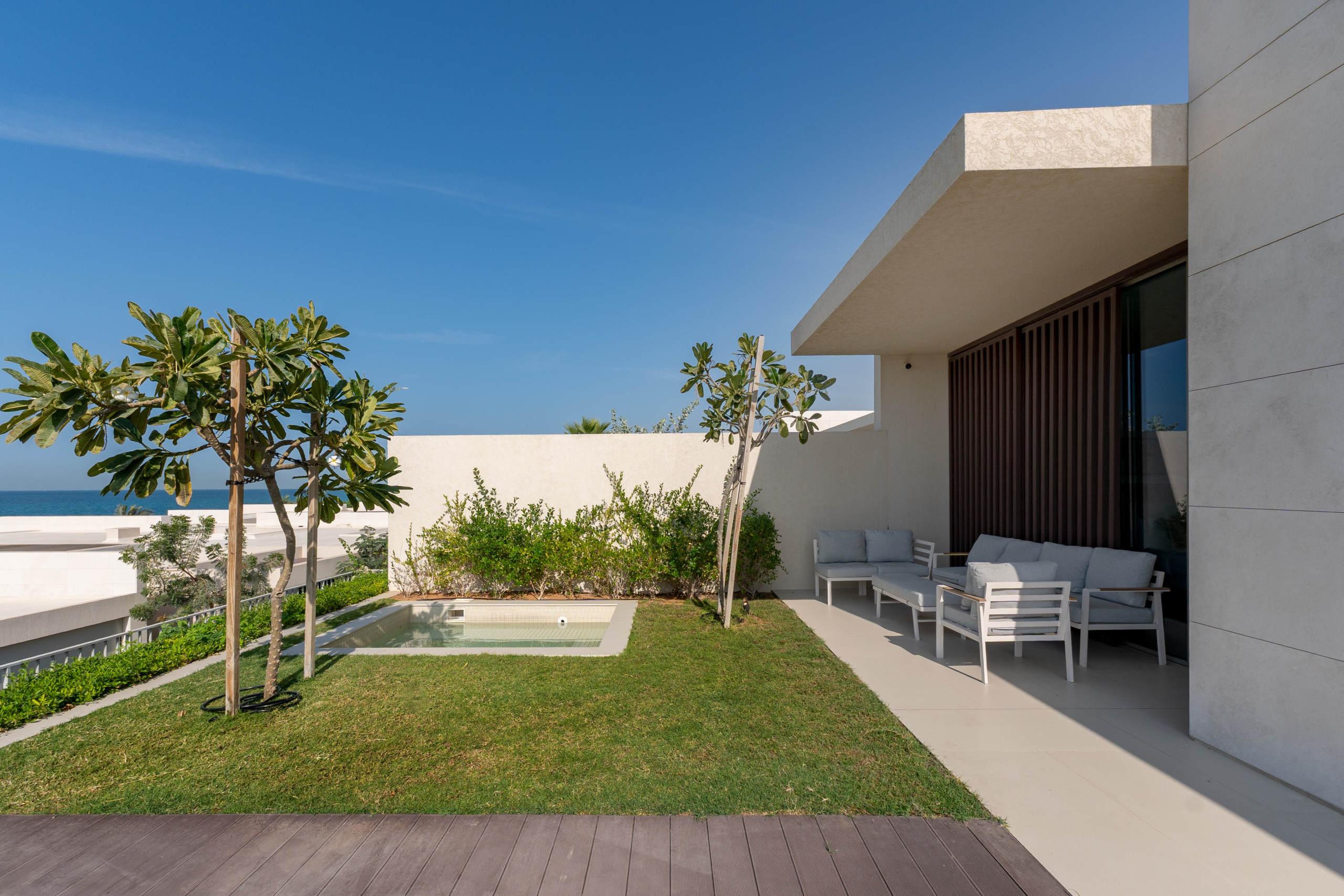 The whole place is yours, from the expansive terrace where mornings start with a dip in the private pool or a session in the jacuzzi, to the main floor designed for absolute enjoyment. This statement of modern coastal luxury offers seamless indoor-outdoor flow: the lounge and living areas adapt perfectly for both quiet time and sophisticated gatherings. A unique sense of calm is introduced by the luminous, central indoor garden, while the dedicated entertainment area is perfectly set up for movie nights on the big screen. The fully-equipped kitchen opens beautifully to the dining area that comfortably seats your entire party. With four ensuite bedrooms, direct access to the private beach, a separate guest toilet, a dedicated maid’s room, and two reserved parking spots, every practical detail is covered, ensuring your exclusive experience is effortlessly smooth.